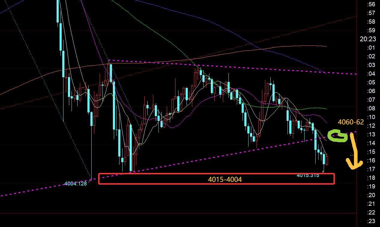 Quarto, il livello orario d'oro: dall'immagine sopra, il triangolo di convergenza inferiore si è rotto continuamente durante il mercato europeo di oggi. Poi ci sarà un rimbalzo prima e dopo il mercato statunitense, che attirerà facilmente i rialzisti. C'è una seconda tendenza al ribasso. Prestare attenzione al punto di contropressione del canale 4060, che a breve termine è sotto pressione. Ribassista, il supporto inferiore è 4015 e 4004. Se si perde la soglia 4000, prestare attenzione a 3975, 3945 e il limite è 3914. Personalmente, penso che lo spazio inferiore non sia grande, o il tempo non sia di lunga durata. Sarà in fondo tra 2 e 4 ore. Da parte dello Stato, è facile sorprendere il rimbalzo ipervenduto tirando al ribasso; quindi, cerca di non inseguire il declino prima che sia avvenuta la ripresa; inoltre, se il prezzo supera 4060, sale di nuovo e ritorna al triangolo di convergenza, espanderà l’intervallo di convergenza e continuerà a consolidarsi, oppure si stabilizzerà lentamente e si muoverà verso l’alto. Non puoi essere ciecamente ribassista; quindi, se stasera sarai ribassista per la seconda volta, il prezzo di chiusura non deve ricadere nel triangolo viola del grafico. Se vuoi essere rialzista a un livello basso, devi aspettare fino al xm217.completamento del secondo ribasso o finché non ci sono segnali stabili vicino ai supporti menzionati prima di considerare;
