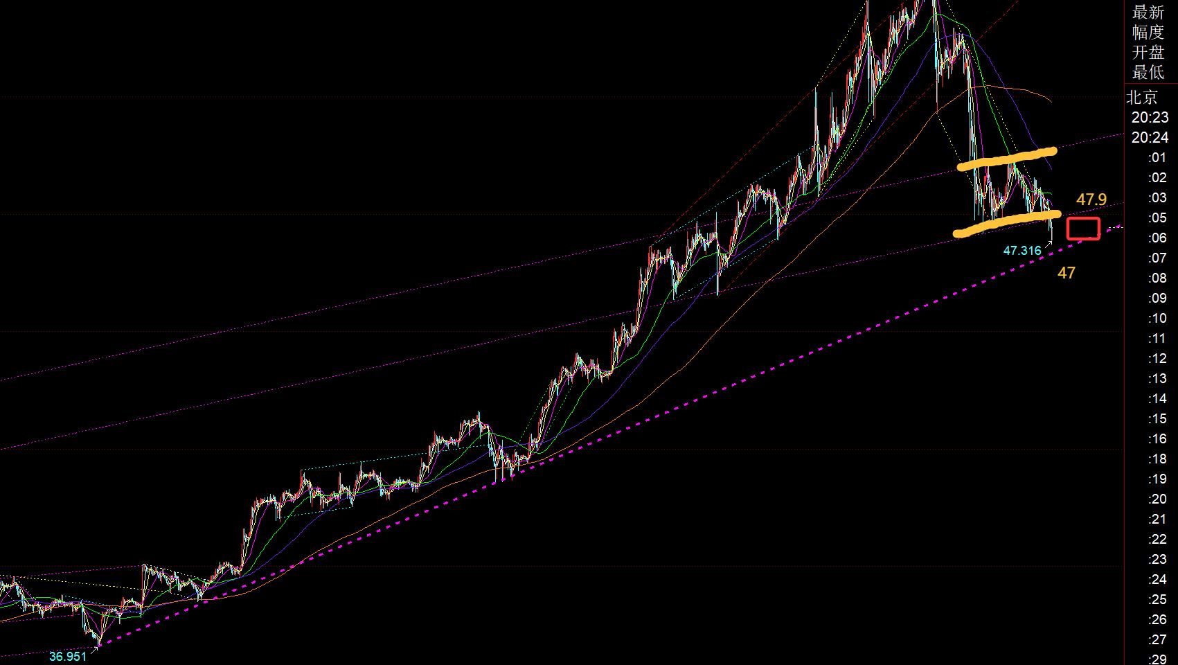 In secondo luogo, in termini di argento: ho provato un piccolo supporto della linea di tendenza durante la giornata di venerdì scorso, ma anche il mercato europeo è sceso sotto 1 Wave, il mercato statunitense ha sottolineato che il supporto superiore di 47,75 è in linea, ma non ha seguito l'oro;