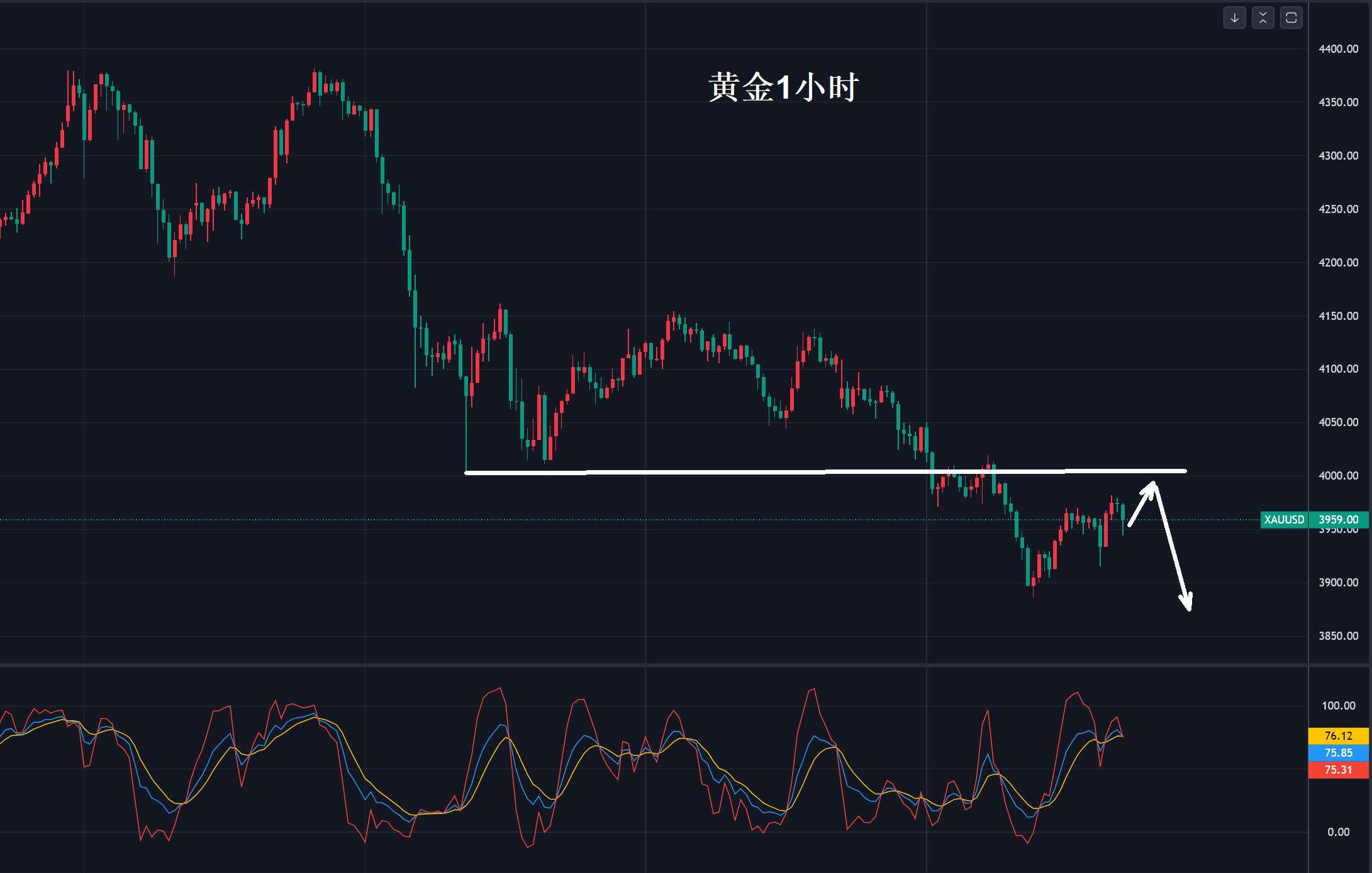 Martedì, il prezzo dell'oro è sceso di 100 dollari e il mercato statunitense si è ritirato di 100 dollari. L'ampiezza ha raggiunto più di 200 dollari USA nel corso della giornata. Ha rimbalzato dopo aver testato vicino a 3.880 dollari. Il punto chiave di questo rimbalzo è stato di 4.003 dollari. Questa posizione è stata anche la pressione chiave dopo che il precedente shock della gamma 4180-4003 è stato interrotto.