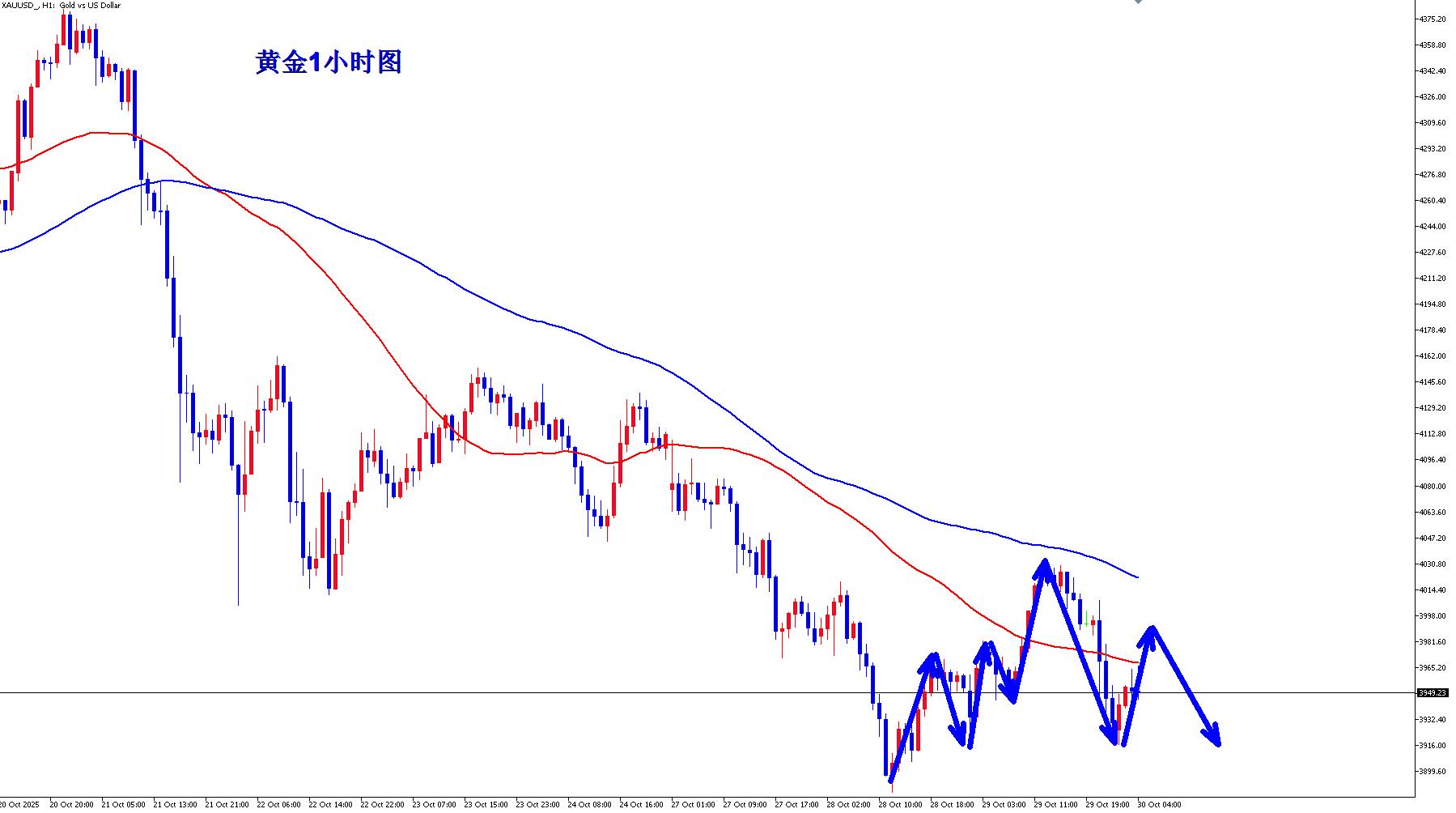 La media mobile di 1 ora dell'oro continua ancora a scendere, e ora l'oro è tornato al di sotto della media mobile. L'oro è ancora più rialzista sul lato corto. L'oro è balzato fino a 4007 dopo i dati di ieri sera per poi crollare rapidamente. Nei primi scambi l'oro era sotto pressione sulla linea 4000 e ha continuato ad essere dominato da massimi e minimi. I rialzisti dell'oro non sono rimasti fermi sulla linea dei 4000, e le posizioni short sull'oro sono state migliori.
