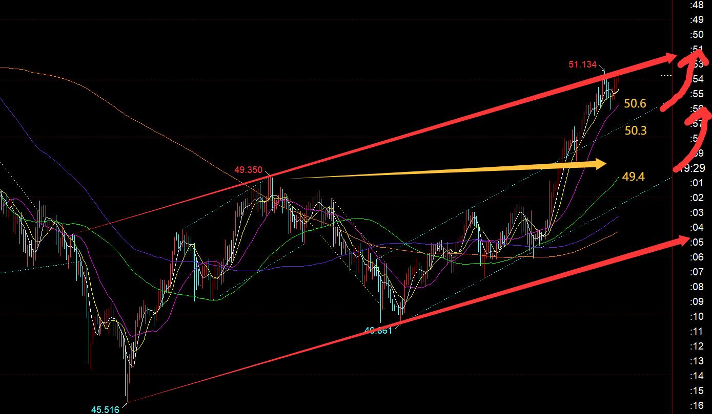 Argento: anche ieri ha chiuso con un forte sole, rompendo efficacemente il livello di pressione laterale di 49,4-49,5 nel precedente triangolo ascendente, quindi diventerà un efficace supporto superiore e inferiore per le prospettive del mercato e continuerà a salire; oggi è salito alla linea 51, e ha raggiunto la divisione 618, il secondo massimo, prima dell'oro. Ciò implica da un lato che l'argento è più forte dell'oro, o che c'è ancora più margine di miglioramento, indicando la successiva divisione di 52,5. Dall'immagine sopra, anche il mercato asiatico ha continuato a salire, è salito più in alto ed è sceso nel pomeriggio, ha stabilizzato la linea oraria e ha toccato il fondo, e sta per testare il massimo intraday. In questo modo, l'andamento del mercato europeo è ancora forte, e stasera ci sarà un secondo rialzo, che stasera sarà ovviamente rialzista rispetto all'oro; dopo 50.6-50.8 staseraContinua ad essere rialzista. Dopo aver superato 51.1, spostati gradualmente verso 52-52.5; cioè, una volta che avrà sfondato e raggiunto il binario superiore del canale rosso, aprirà ulteriormente lo spazio rialzista;
