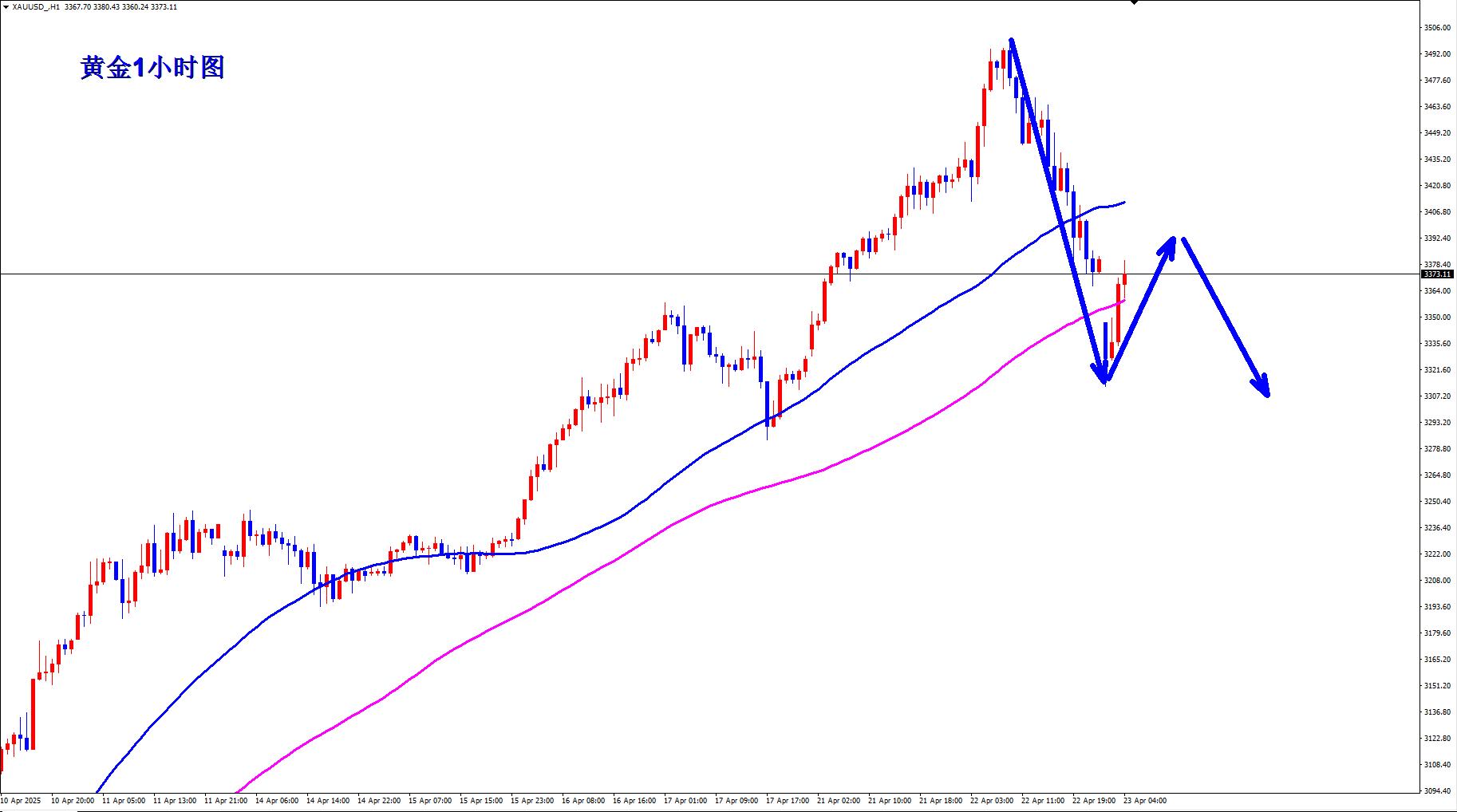 Gold 3400 short, stop loss 3410, target 3360-3350;
