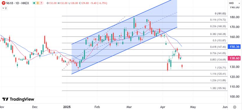 뉴스로 인해 JD의 주가는 오늘 아침에 급격히 낮아졌고 일주일 이상 최저 수준으로 세션 동안 7% 이상 떨어졌습니다. JD가 중기 및 장기적으로 테이크 아웃 및 인스턴트 소매의 상승 효과를 입증 할 수 있다면, 테이크 아웃 사업의 이점은 처음에 주가에 반영되어 추가 평가 공간을 열 수 있습니다. 현재의 관심사는 이달 초에 설정된 HK $ 125의 최저치보다 낮은 지 여부입니다. 아래로 떨어지면 HK $ 120 미만의 압력이 빠르게 테스트 될 것임을 의미합니다.