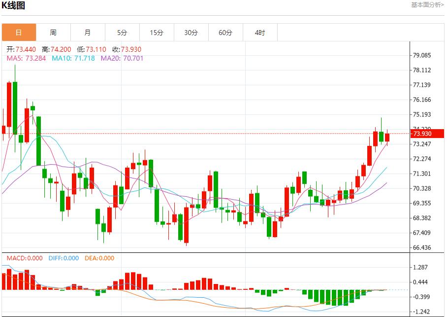 原油市场:截止北京时间21:15,美油上涨,现报73.930,涨幅0.52%。纽市盘前,原油价格稳定在73.70美元以下,以保持今天的熊市趋势有效和活跃,这使得价格稳定在这一水平以下,等待获得负面动机,帮助推动价格走向我们的主要预期目标72.15美元。