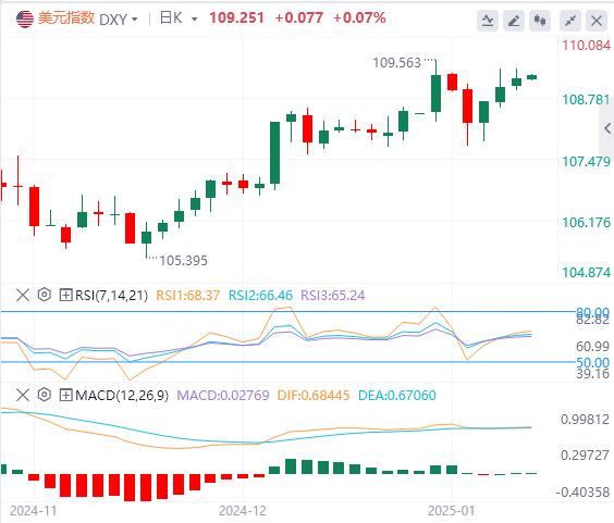 周四,因特朗普预计将在上台后对贸易伙伴征收关税,美元指数连续三日走强,截至目前,美元报价109.25。