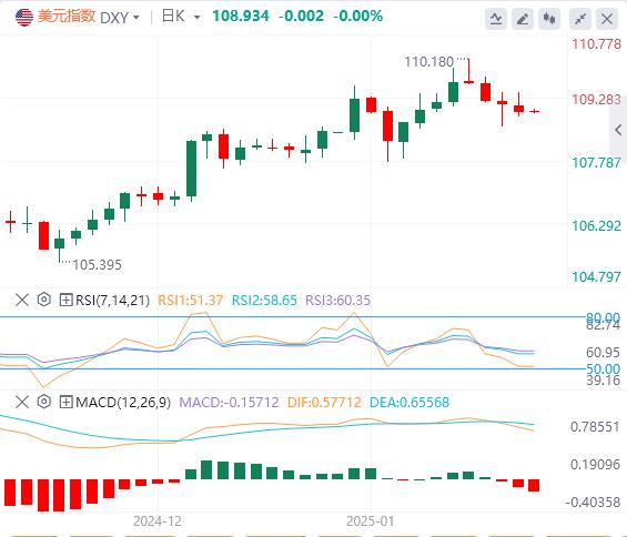 美元指数:截止发稿,美元指数徘徊在108.93附近。本周表现不佳主要源于美国国债收益率下降,这削弱了美元的吸引力,主要是由于12月数据疲软。技术面上,如果美元指数低于109.00水平,它将朝着最近的支撑位前进,即位于108.30–108.50区间。