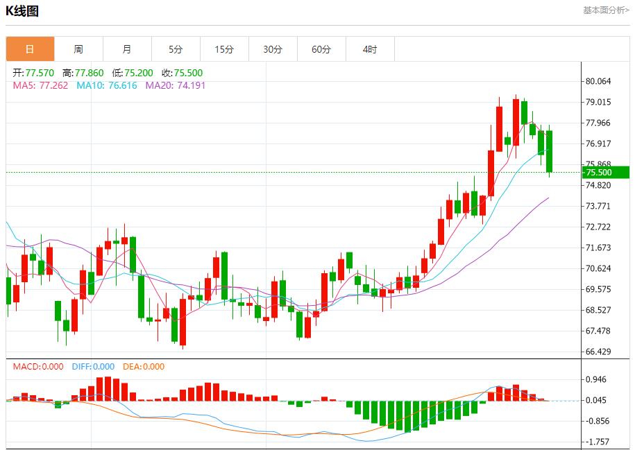 原油市场:截止北京时间21:20,美油下跌,现报75.530,跌幅2.40%。纽市盘前,原油价格恢复其负面交易以突破77.53美元并试图保持在其下方,强化了在今天剩余时间内继续主导修正看跌趋势的预期,为走向75.53美元作为下一个负站铺平了道路,提醒您突破78.25美元将停止看跌趋势,并推动xm217.com价格试图再次恢复主要看涨趋势。
