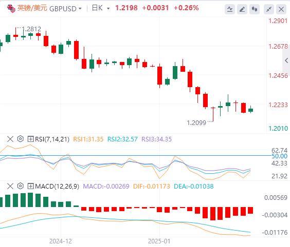 在年初遭受大幅亏损后,英镑/美元未能聚集复苏动能,连续第三周收跌。该货币对周一早盘获得牵引力,交投于1.2200上方。