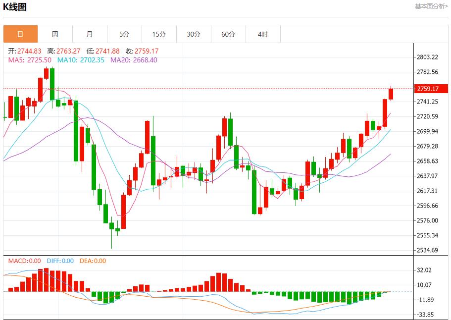 现货黄金:截止北京时间21:20,现货黄金上涨,现报2759.16,涨幅0.53%。纽市盘前,黄金价格在看涨通道的阻力线附近波动,受到阻碍使命上升的随机利空的影响,等待获得有助于推动价格恢复牛市的积极动机,目标是2790.00美元水平作为下一个主站。
