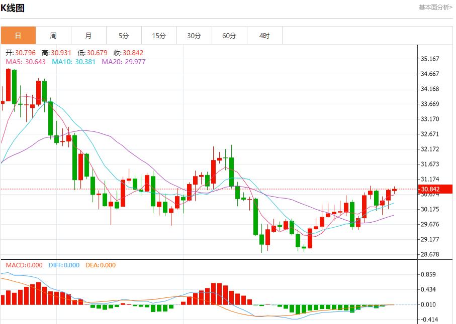 现货白银:截止北京时间21:20,现货白银上涨,现报30.842,涨幅0.09%。纽市盘前,白银价格稳定在30.63美元上方,显示自上午以来交易疲软,因此,看涨趋势情景将在今天保持有效,没有任何变化,这为价格稳定在上述水平上方创造了条件,提醒您我们的主要等待目标达到31.63美元。