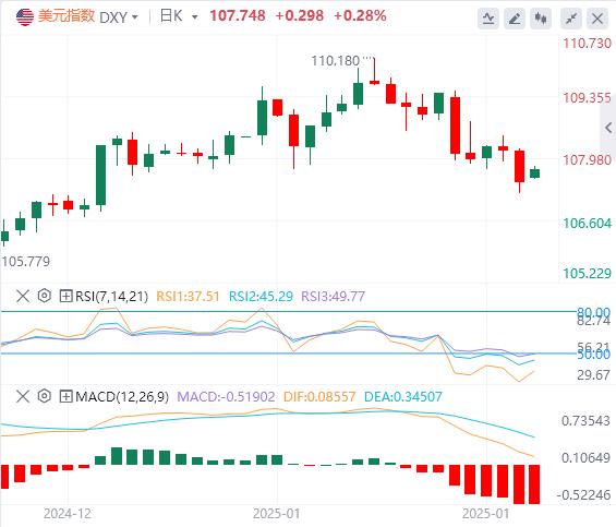 上周五,由于特朗普暗示在关税方面的立场可能有所软化并呼吁美联储立即降息,美元指数延续跌势,截至目前,美元报价107.74。
