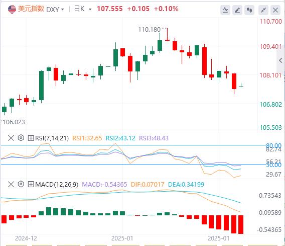 1月27日,北京时间周一亚市早盘,美元指数徘徊在107.55附近。上周五,由于特朗普暗示在关税方面的立场可能有所软化并呼吁美联储立即降息,美元指数延续跌势,最终收跌0.644%,报107.45,创一个月新低,在特朗普上台首周录得一年多最大周跌幅。美债收益率震荡走低,为连续第二周下行,基准的10年期美债收益率小幅上行,收报xm217.com4.623%;对货币政策更敏感的两年期美债收益率回落至4.263%。在美元走弱的提振下,现货黄金一度涨超1%,站上2780美元/盎司,接近去年10月份的历史高点,最终收涨0.59%,报2771.25美元/盎司,为连续第四周上涨。现货白银盘中触及31美元关口,为去年12月13日以来首次,最终收涨0.53%,报30.61美元/盎司。在特朗普全面提高国内石油产量并呼吁欧佩克降低油价后,两油有所反弹,但全周仍录得下跌,终结了四周连涨。WTI原油一度逼近74关口,随后涨幅有所收窄,最终收涨0.31%,报74.39美元/桶;布伦特原油收涨0.31%,报77.55美元/桶。