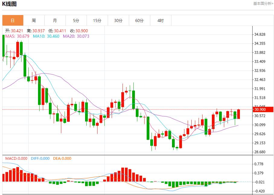 现货白银:截止北京时间21:28,现货白银上涨,现报30.908,涨幅1.61%。纽市盘前,白银价格稳定在30.63美元上方,以保持今天的看涨趋势,这取决于价格在上述水平上方的稳定性,等待收集积极的动力,帮助推动价格实现我们在31.63美元的主要预期目标。