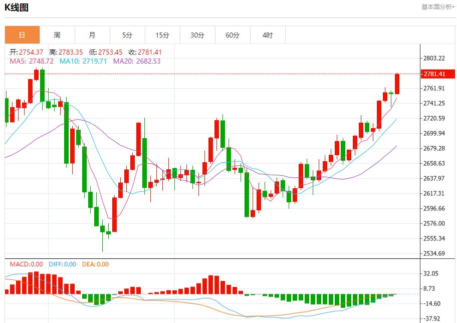 现货黄金:截止北京时间21:28,现货黄金上涨,现报2781.77,涨幅0.96%。纽市盘前,金价现在显示横盘交易,它可能会测试关键支撑位2762.00美元,然后掉头再次上涨,因为它受到随机利空的影响,阻碍了继续上涨的使命。