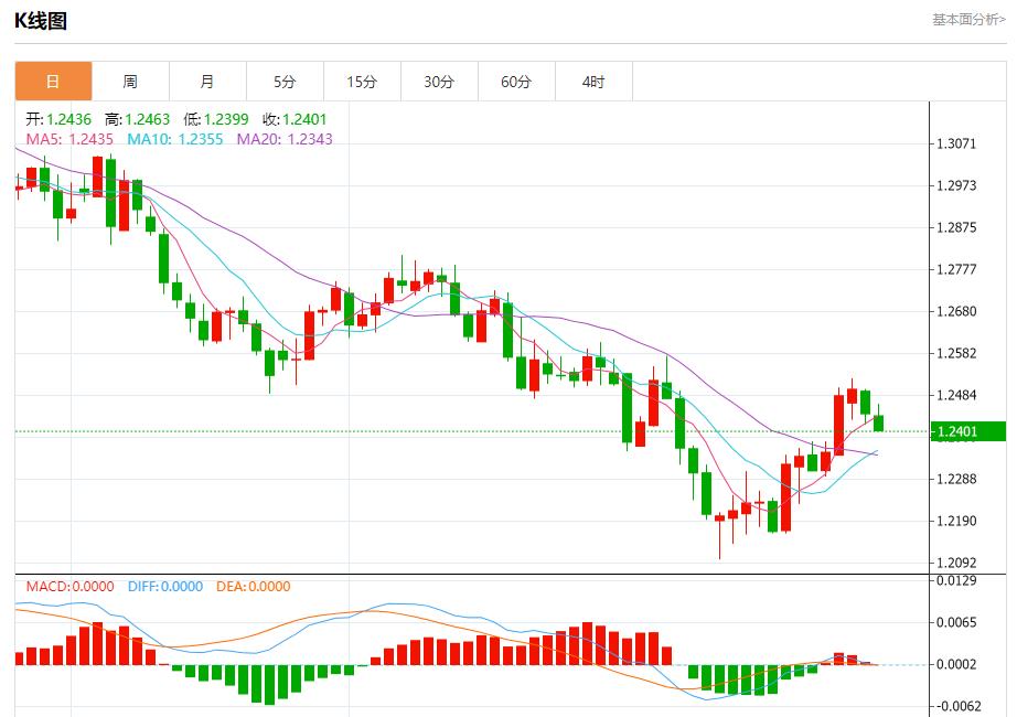 英镑/美元:截止北京时间21:26,英镑/美元下跌,现报1.2402,跌幅0.32%。纽市盘前,GBPUSD价格提供了积极的交易,逐渐远离1.2415美元水平,这支持了今天预期的看涨趋势的延续,目标是1.2609美元作为下一个主站,注意到日内看涨通道组织了修正看涨波,除非突破1.2415美元并保持在1.2415美元以下,否则将保持有效。
