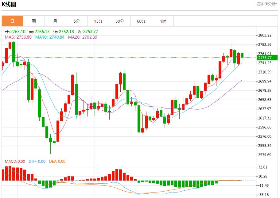现货黄金:截止北京时间21:26,现货黄金下跌,现报2753.14,跌幅0.37%。纽市盘前,金价自上午以来在2765.00美元水平附近波动,等待恢复以2790.00美元为目标的牛市行情,因为价格继续在图表上出现的牛市通道内移动,提醒您牛市行情的持续取决于2740.00美元上方的价格稳定性。