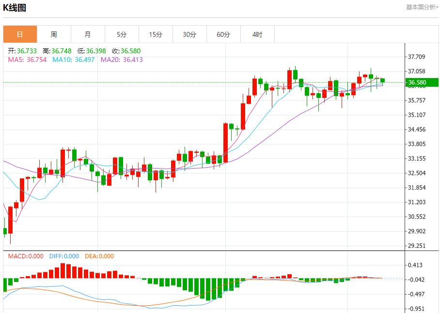 现货白银:截止北京时间19:16,现货白银下跌,现报36.594,跌幅0.37%。纽市盘前,(白银)价格在最后一个盘中交易中下跌,依靠EMA50的支撑,同时在短期内测试一条小幅看涨趋势线,代表着重新获得复苏和再次上涨所需的看涨势头的最后机会,在(RSI)出现积极信号的帮助下,价格在附近支撑位上方的稳定性加强了积极情况。