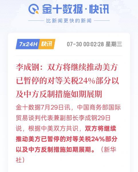 为期两天的中美第三轮贸易谈判结束,中国商务部国际贸易代表团的消息显示,李成钢表示:“中美经贸团队将继续保持密切沟通,就经贸问题进行及时交流。”关于关税问题,李成钢副部长称双方将继续推动美方已暂停的24%对等关税以及中方反制措施的展期。