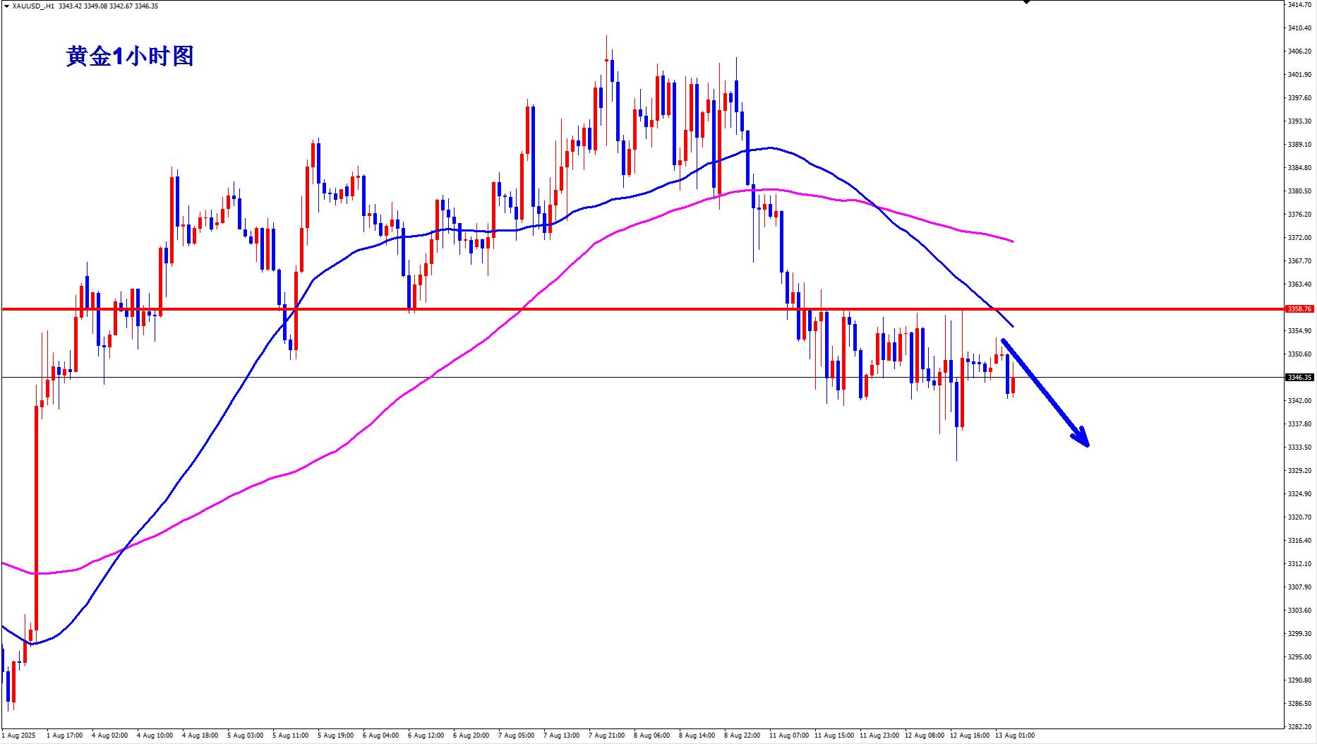 黄金3347空,止损3360,目标3320-3310;