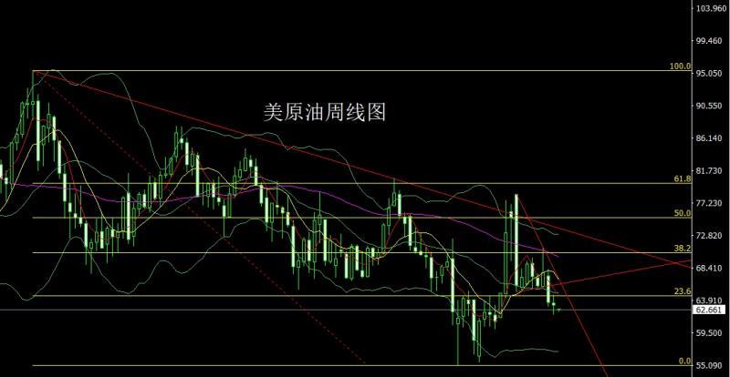 美原油市场上周开盘在63.58的位置后行情先拉升给出64.7的位置后行情承压回落,周线最低给到了62.06的位置后行情震荡拉升,周线最终收线在了63.26的位置后,周线以一根上下影线等长的长脚十字星形态收线,而这样的形态收尾后,本周63.5空止损64,跌破看62.5和62,跌破看61.6和61.4.