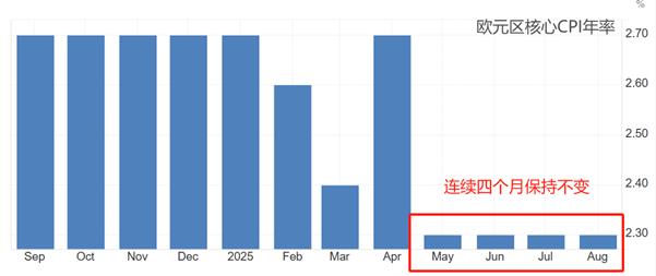 经济数据角度看,欧元区7月失业率为6.2%,连续两个月下降。虽然仍高于5%的警戒线水平,但已经达到了历史上的相对低位,无法改变欧央行维持利率不变的决心。欧元区8月核心CPI年率为2.3%,处于2%温和通胀附近,且已经连续四个月保持不变,通胀形势极为稳定。欧央行的两大任务分别是充分就业和物价稳定,现如今两个目标均宣告达成,没有理由继续调整货币政策。