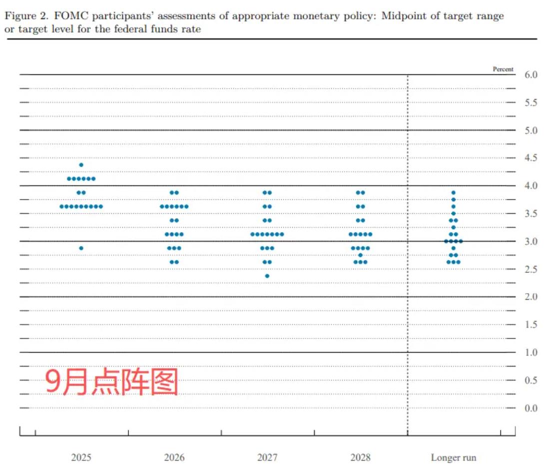 值得注意的是这一次点阵图显示,有一位美联储官员要求降息50个基点,9月美联储降息后应该在年内再降100个基点,而且2026年降息的声音更强烈。