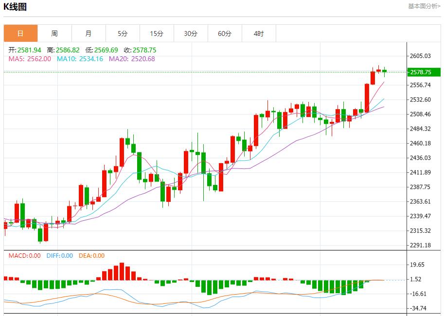 现货黄金:截止北京时间20:23,现货黄金下跌,现报2578.71,跌幅0.17%。纽市盘前,金价继续提供横向交易,随机指标接近超卖区,而EMA50继续为价格提供积极支持,因此,我们将继续建议今天的看涨趋势,这取决于价格在2564.50美元上方的稳定性,等待访问2600.00美元作为下一个主要目标。