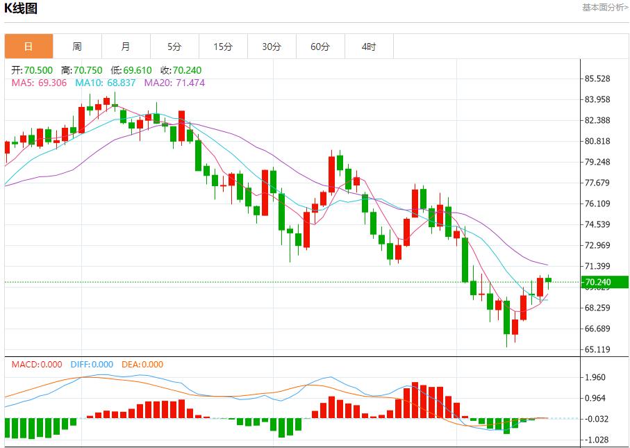 原油市场:截止北京时间20:23,美油上涨,现报70.210,涨幅0.19%。纽市盘前,原油价格目前面临着跌破70.43美元水平的负面压力,这促使人们在即将到来的交易中保持谨慎,因为在该水平以下的盘整将阻止修正性的看涨情景,并在即将到来的交易中使价格面临负面压力,主要向68.55美元靠拢。