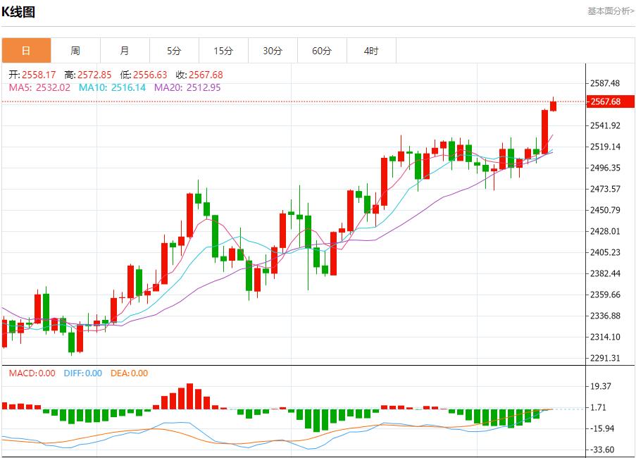 现货黄金:截止北京时间20:19,现货黄金上涨,现报2567.60,涨幅0.35%。纽市盘前,黄金价格继续平静地上涨,等待获得积极的动力,以帮助推动价格走向我们的下一个主要目标2600.00美元,继续暗示今天的看涨趋势,受EMA50支撑,提醒您持有2548.50美元以上是继续预期上涨的第一个保护因素。