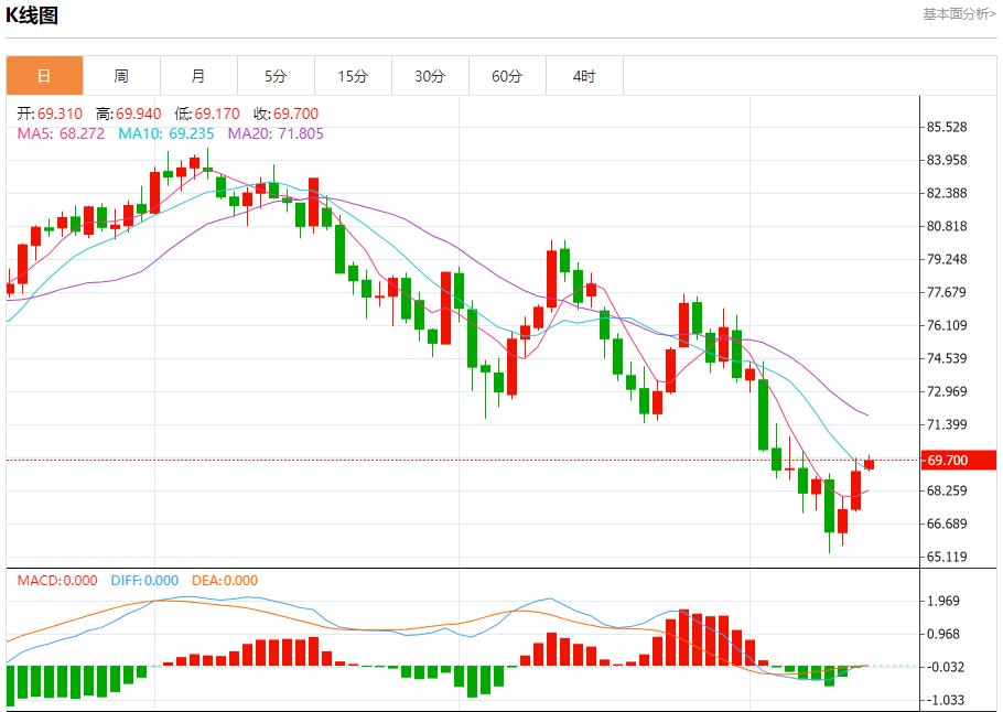 原油市场:截止北京时间20:19,美油上涨,现报69.720,涨幅1.12%。纽市盘前,自上午以来,原油价格没有表现出任何强劲的走势,在EMA50附近波动,因此,今天的预期看涨趋势没有改变,这取决于价格稳定在68.55美元以上,等待实现我们的积极目标,即从70.43美元开始,在突破前一水平后延伸至71.95美元。