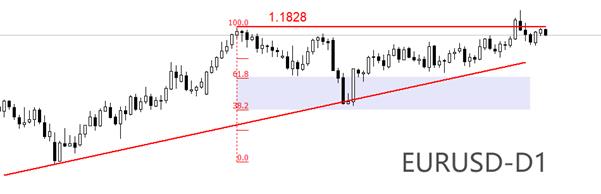昨日,美元指数以阴线收盘,最低触及97.17点。欧元受到提振,昨日收阳,最高点在1.1819点。美元跌欧元涨的局面,符合鲍威尔讲话冲击降息预期的逻辑。