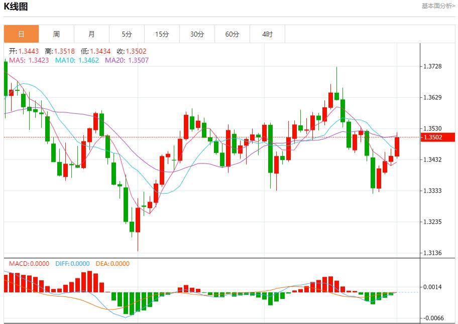 英镑/美元:截止北京时间20:23,英镑/美元上涨,现报1.3504,涨幅0.44%。纽市盘前,(GBPUSD)价格在日内交易的最后阶段略有下跌,受到EMA50阻力位的影响,迫使其下探,尤其是相对强弱指标出现负面信号,提示形成负向背离,如果负面信号持续,将加剧下行压力,同时在短期内看空波动占主导地位。