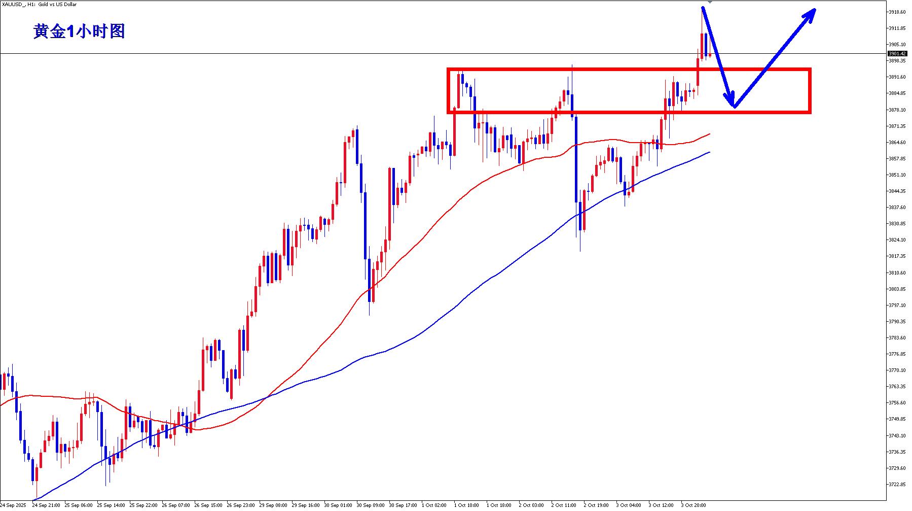 黄金早盘开盘之后继续强势突破突破创新高,黄金多头继续在新的上涨征程中驰骋,黄金1小时均线再次向上拐头上翘,黄金多头的力度再次回归,黄金还有继续上涨的动能,黄金在第三次向上之后突破,黄金前期3880-3890区域现在已经形成支撑,早盘回落早盘起涨点3885附近继续逢低做多。