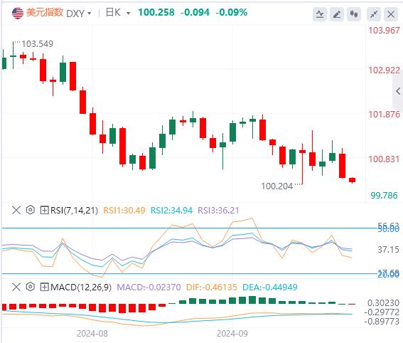 周二,美国谘商会9月消费者信心指数大幅下滑令美元指数承压,截至目前,美元报价100.25。