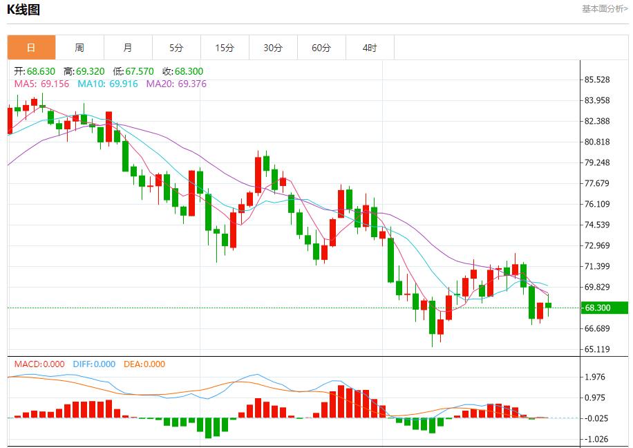 原油市场:截止北京时间20:20,美油上涨,现报68.310,涨幅0.19%。纽市盘前,原油价格在今天早上上涨后,现在显示出看跌倾向,接近关键支撑68.55美元,价格需要在此水平上方巩固,以保持今天的看涨趋势,最初目标是70.44美元,提醒你突破它将把价格推至71.95美元作为下一个目标,而突破68.55美元代表着转向下跌和在日内建立熊市的关键。