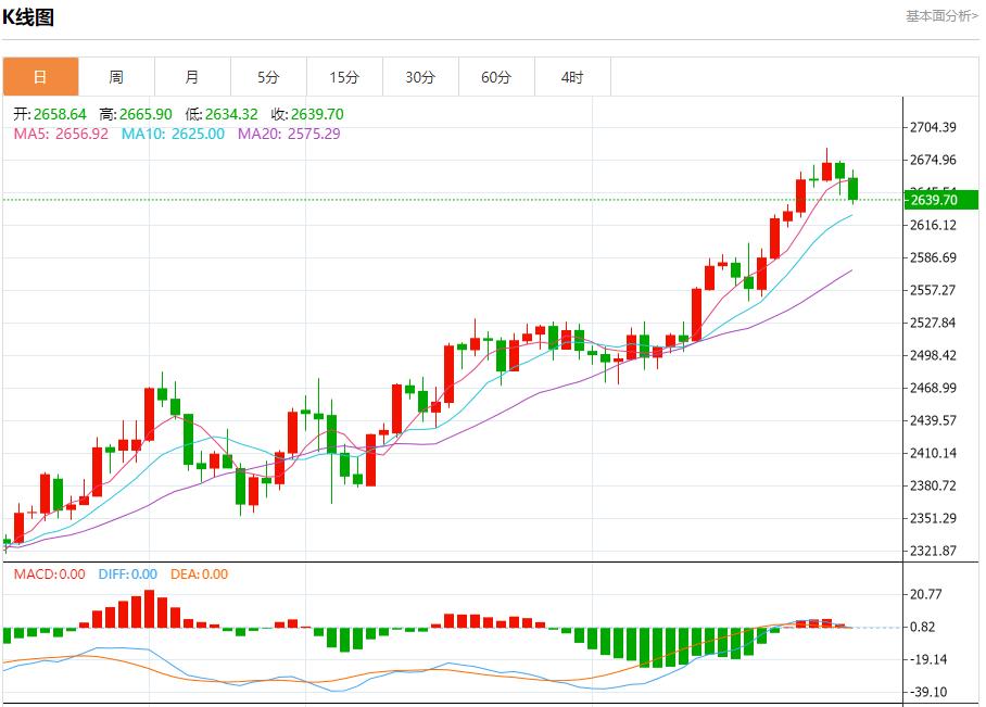 现货黄金:截止北京时间20:20,现货黄金下跌,现报2639.45,跌幅0.73%。纽市盘前,自上午以来,黄金价格没有表现出任何强劲的走势,继续在主要看涨通道的阻力线附近波动,并在该线下方结算,因此,今天的预期看跌趋势没有改变,这取决于价格稳定在2666.00美元以下,提醒您我们的主要等待目标位于2614.00美元,注意随机指标逐渐失去其积极的动力来支持今天下跌的预期。