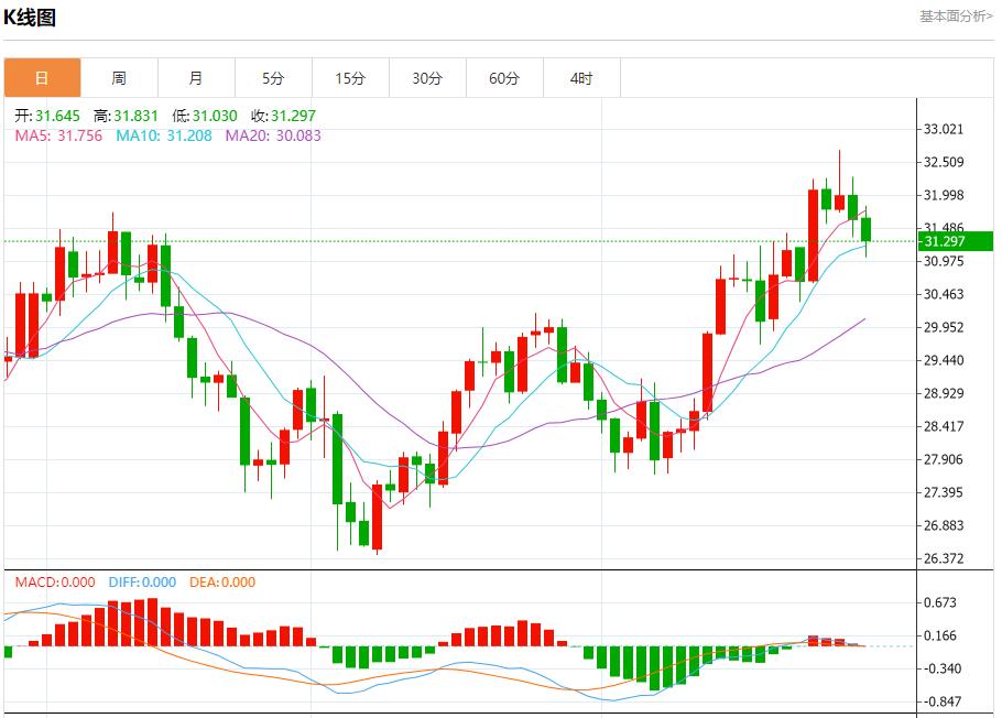 现货白银:截止北京时间20:20,现货白银下跌,现报31.268,跌幅1.13%。纽市盘前,自上午以来,白银价格稳定在31.50美元附近,只要价格低于31.70美元,我们的看跌观点今天仍然有效,因为我们主要在等待测试31.00美元,提醒您突破这一水平将推动价格向30.06美元方向发展,作为下一个负站。