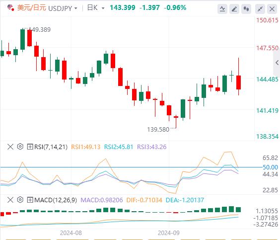 不过,前防卫大臣石破茂在自民党总统选举中击败经济安全大臣高市早苗,在决选中胜出,预计将在下周的国会投票后被任命为首相。受此影响,日元兑美元扭转下行势头,从146回升至143附近。