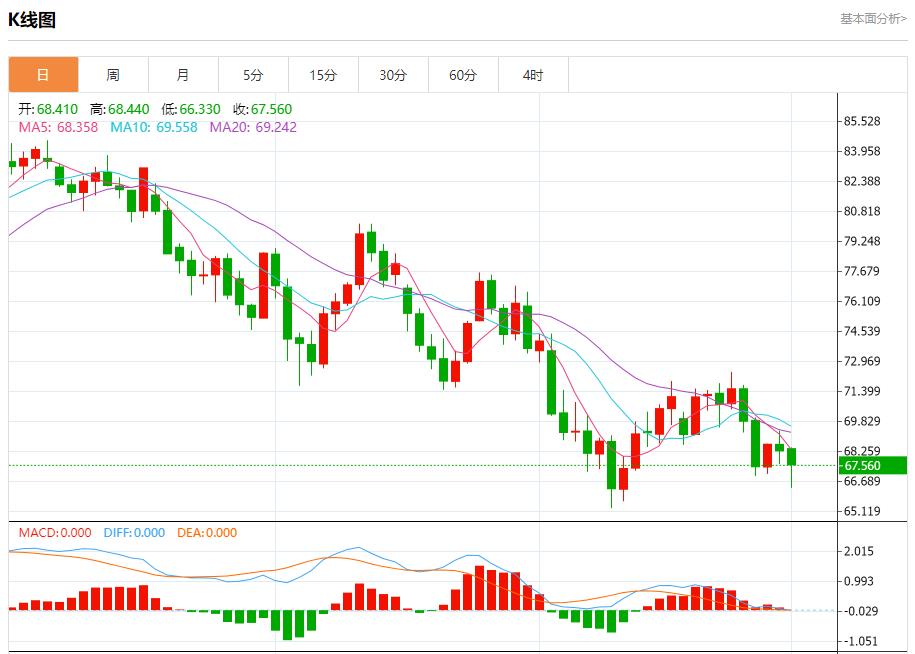 原油市场:截止北京时间20:20,美油下跌,现报67.540,跌幅0.98%。纽市盘前,原油价格面临突破68.55美元的负面压力,并在未来几个交易日转向下跌,为实现66.6美元和65.50美元的负面目标开辟了道路。