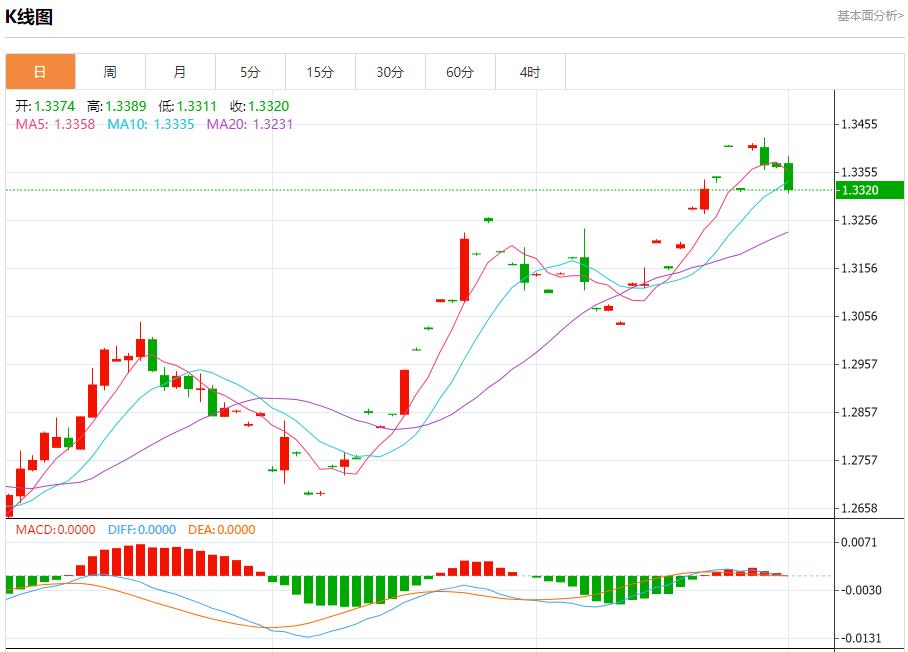 英镑/美元:截止北京时间20:20,英镑/美元下跌,现报1.3320,跌幅0.41%。纽市盘前,GBPUSD价格以强烈的负值交易,开始攻击1.3328美元水平,这暗示着在即将到来的交易中实现熊市修正,但我们将保持积极的观点,除非打破这一水平,并在最初的四小时收盘时低于这一水平,这将推动价格走向1.3266美元,作为下一个负站,注意预期牛市的第一个积极目标位于1.3429美元。
