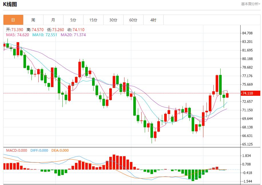 原油市场:截止北京时间20:20,美油上涨,现报74.090,涨幅1.16%。纽市盘前,原油价格显示出积极的交易,现在远离73.70美元的水平,加强了对未来几个交易日继续看涨趋势的预期,实现我们下一个目标75.65美元的道路是开放的。