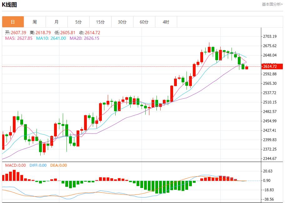 现货黄金:截止北京时间20:20,现货黄金上涨,现报2614.84,涨幅0.28%。纽市盘前,金价在2615.00美元水平附近波动,而之前完成的双顶形态的负面影响,等待恢复熊市波打破2603.87美元,并确认向2578.65美元方向前进,作为下一个主要目标。