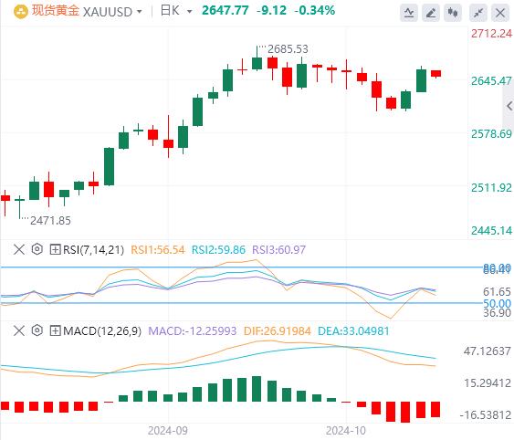 周一亚盘,黄金交投于2647.77附近。黄金价格震荡走低至2,650美元,结束了两日连涨势头。中国经济数据疲弱和美元走强对贵金属构成了压力。不过,今年进一步降息的前景和避险需求可能会阻止金价下行空间。9月份中国通货紧缩压力加大。9月份消费者物价指数(CPI)通胀意外放缓,而同期生产者物价指数(PPI)下降幅度超出预期,这凸显了采取更多刺激措施的必要性。由于中国是全球最大的黄金消费国,中国通货紧缩压https://xm217.com力持续可能会对黄色金属造成一定的抛售压力。