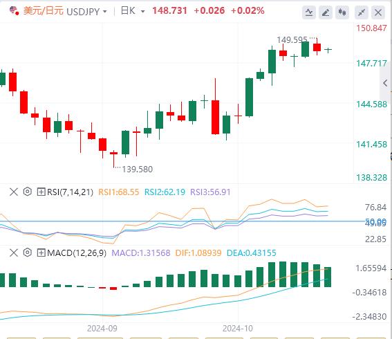 美元/日元周四从149.60上方创下的多月高位逆转,处于下跌状态。货币对保持相对平静,在149.00下方的狭小区间内上下波动。