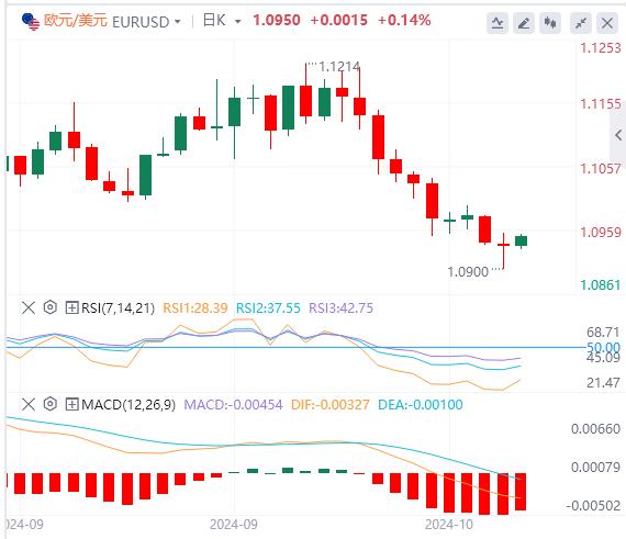 欧元/美元周四收盘持平,因为美元在后半日回落。该货币对难以积聚反弹动能,欧洲时段早盘在略低于1.0950的窄幅通道内交投。德国Destatis周五发布报告显示,9月份全年消费者物价指数环比上涨1.6%,与初步预估相符。