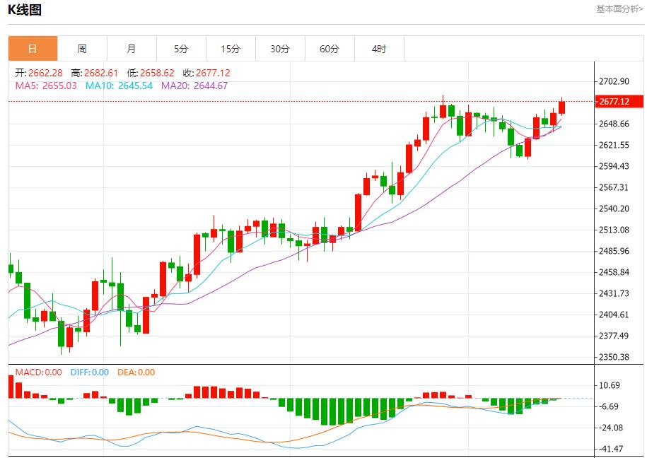 现货黄金:截止北京时间20:23,现货黄金上涨,现报2677.13,涨幅0.55%。纽市盘前,黄金价格持续上涨,达到第二个等待目标的阈值2685.50美元,似乎有可能超过这一水平,创下新的历史新高,注意到确认突破将推动价格向2695.90美元方向发展,随后是2715.00美元水平,作为下一个积极的站。