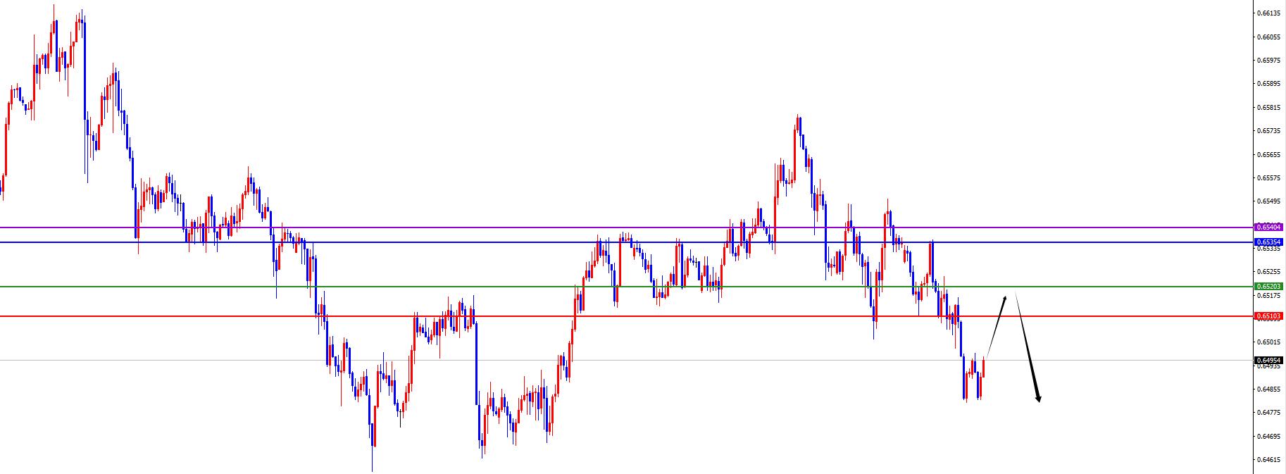 关键分水岭0.6520区域,价格没有出现反转之前先维持空