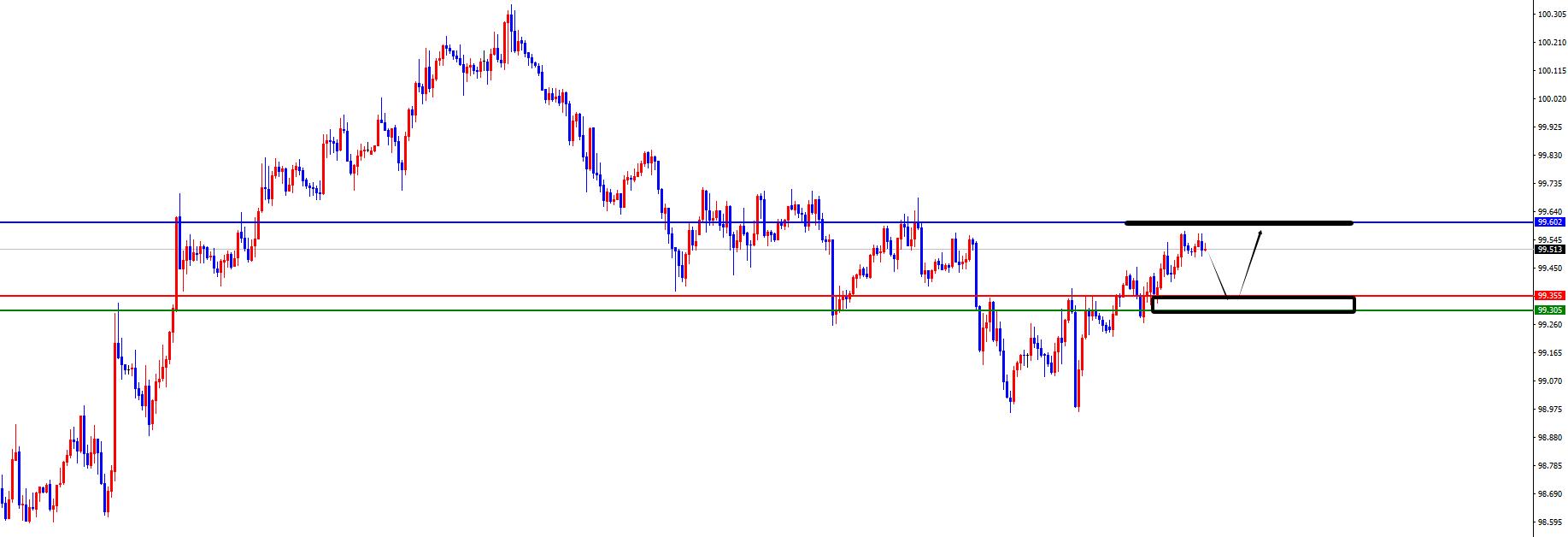 关键分水岭99.30-35区间,价格没有出现反转信号之前维持多