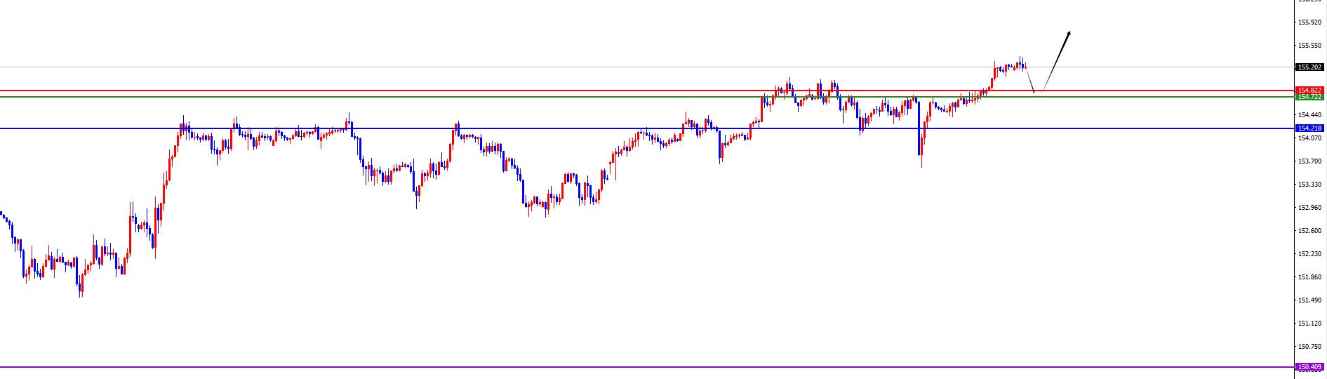 短线分水岭154.70-80区域,价格没有出现反转信号之前维持多