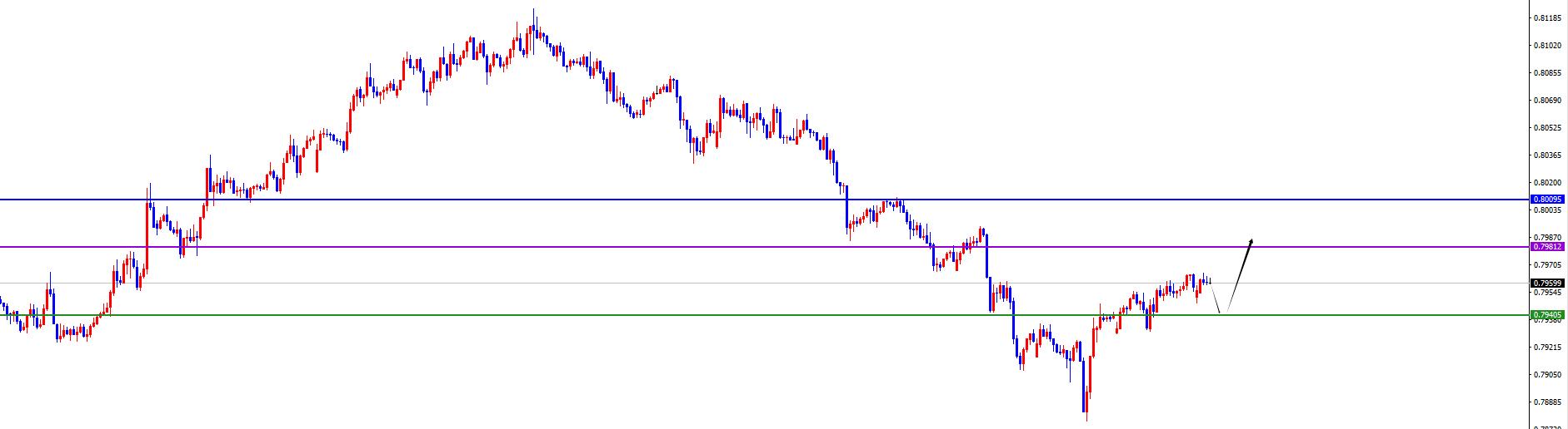 关键分水岭0.7960区域,价格没有出现反转之前先维持多